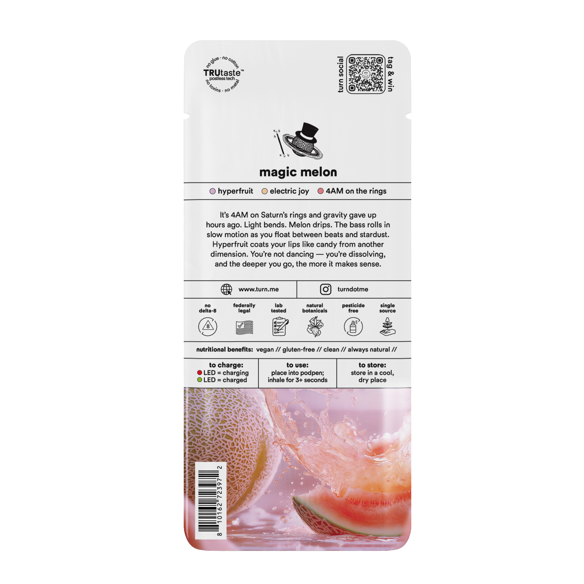 It’s 4AM on Saturn’s rings and gravity gave up hours ago. Light bends. Melon drips. The bass rolls in slow motion as you float between beats and stardust. Hyperfruit coats your lips like candy from another dimension. You’re not dancing — you’re dissolving, and the deeper you go, the more it makes sense.